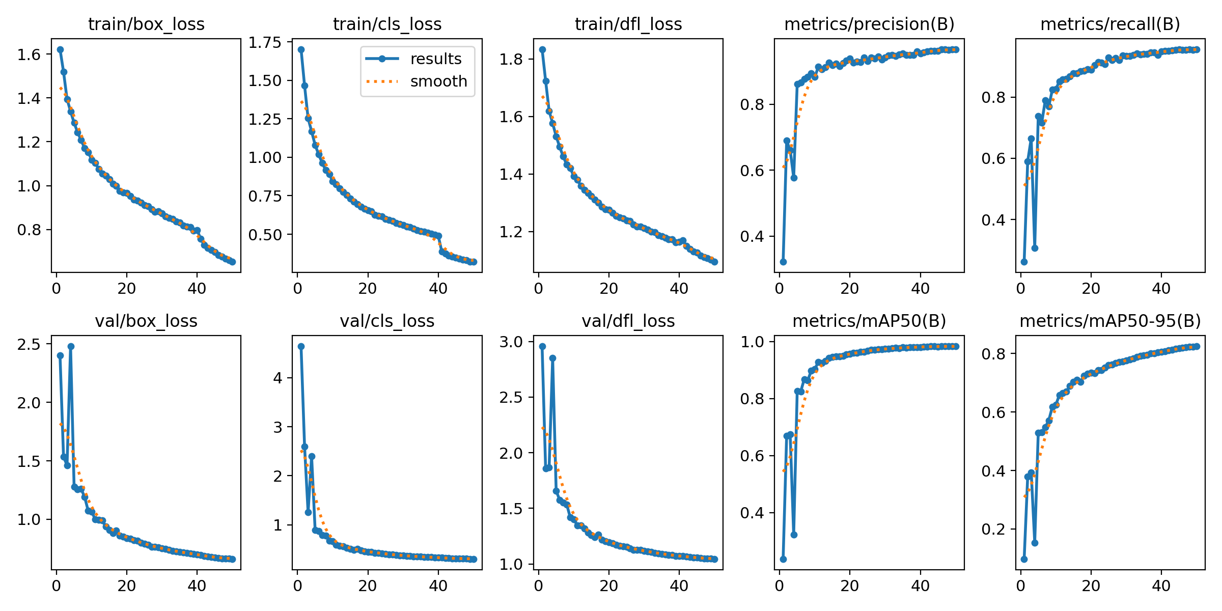 This section highlights the core metrics used to evaluate the model’s performance, including precision, recall, and mAP scores. It also features evaluation charts and inference outputs that demonstrate how the model performs across various conditions.