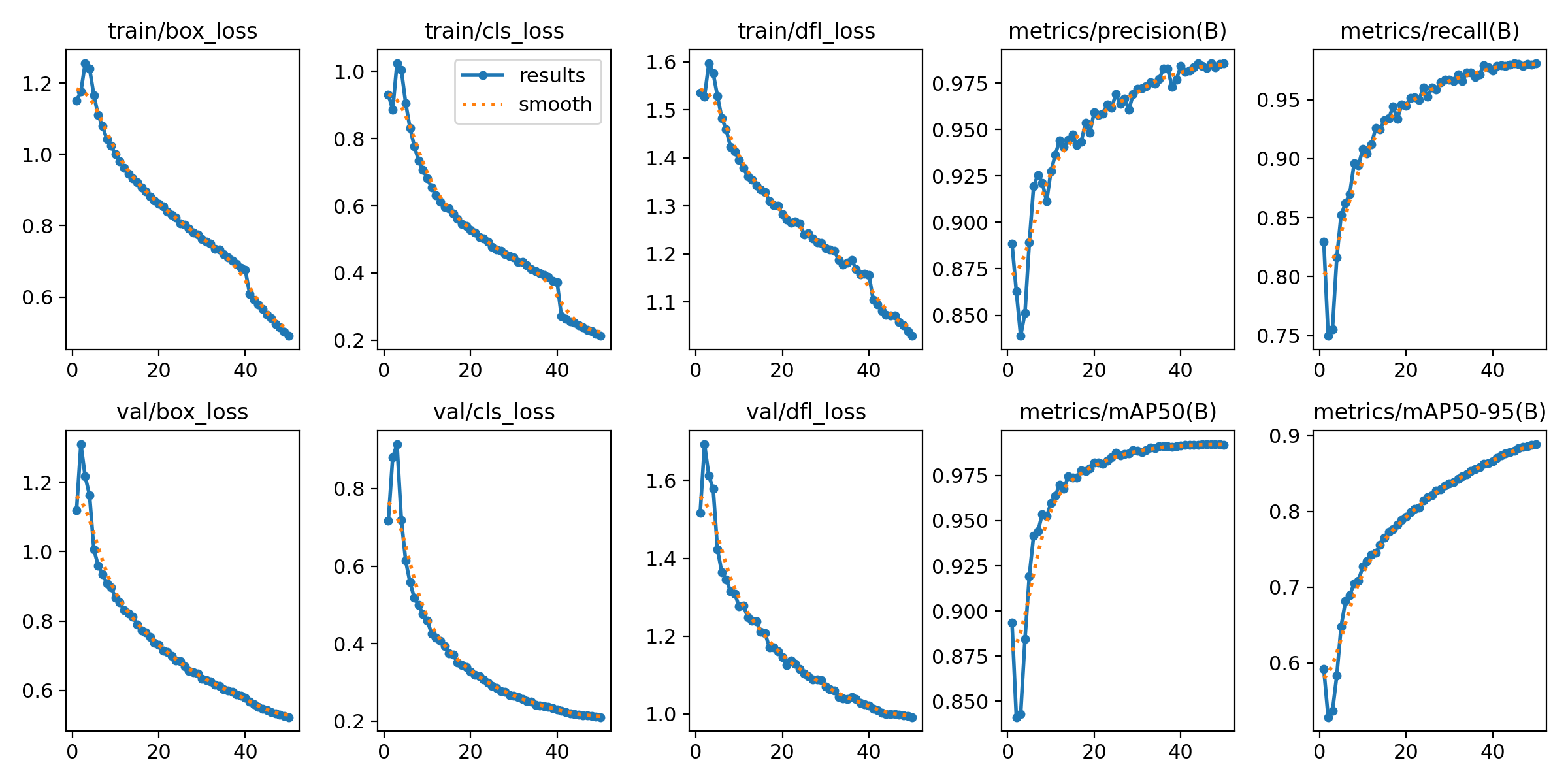 - Achieves 98.55% precision, 98.11% recall, and 99.22% mAP@0.5.